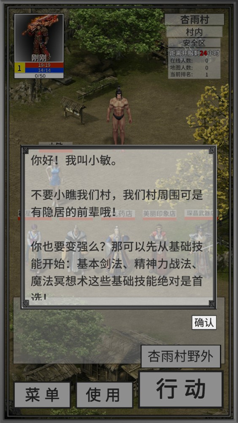 3、点击小敏可以进行对话,如果你要变强,可以先从基础技能开始:基本剑法、精神力战法、魔法冥想术这些基础技能绝对是首选;