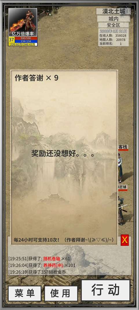 新地图爆率杠杠的 猪比较难打,备好药水,干就完了。 还有作者要恰饭,广告系统来啦,为了这么好的游戏能坚持下去,大家没事看看吧,就当放松几分钟。