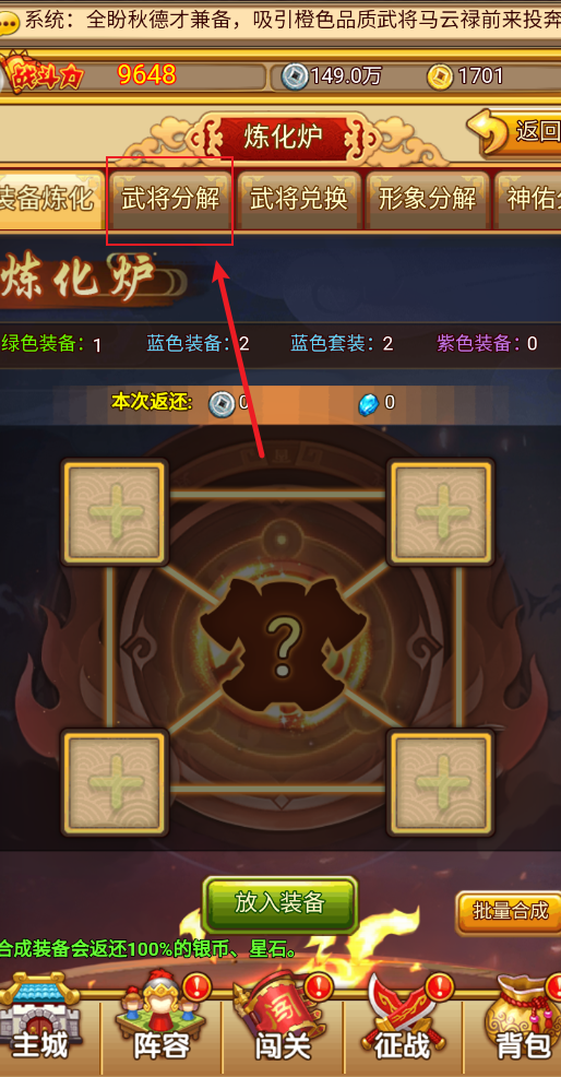 开心塔防如何分解武将?