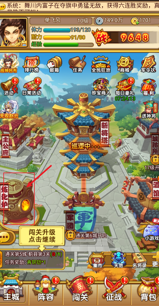 点击主城中的炼化炉