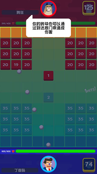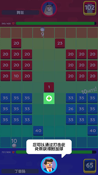 线上1V1模式,在线匹配你的对手,你来我往的小球射击,眼前的砖块是阻止你胜利的障碍,消灭它,打倒敌人。在pvp模式中,每个人物还拥有着专属技能,释放你的专属技能加快打击砖块的力度!注意:当对手的“砖块墙”与玩家自己的“砖块墙”相撞时,会抵消(相减)两块“砖块墙”上面的数字,当砖块数字为0时,该砖块将消失。