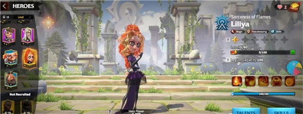 游戏还有丰富的英雄系统,每个英雄都有独特的技能和特长。比如法师职业的Liliya能释放火焰攻击并附带灼烧效果,战士职业的Nika则擅长单体高伤。新人玩家也能快速上手,通过完成任务解锁更多内容。