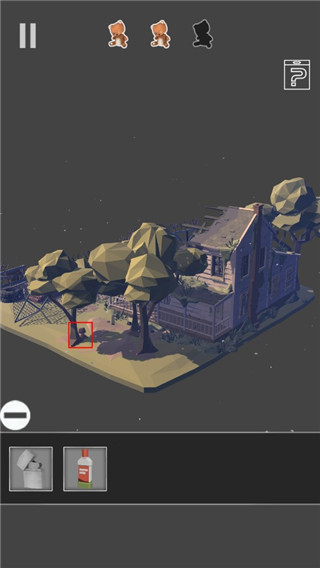 3、转动视角后来到屋后,获得屋后的“凝固的腐蚀液”,并在右边树木间拿到第二个小熊。
