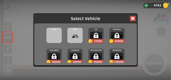 6、装备完成点击右下角的DISMOUNT来进行闯关;