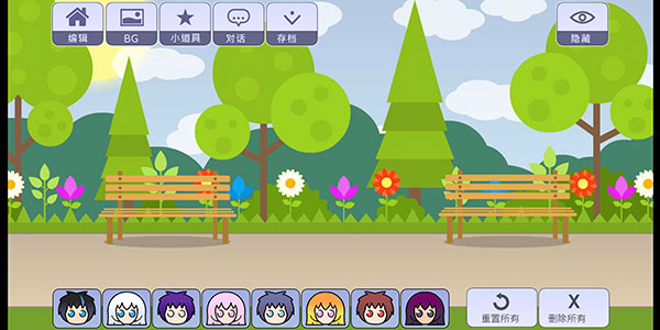 4、在工作室模式中制作场景!创建最多8个角色的场景!选择一个背景,选择你的人物动作,让他们交谈和互动!设置任何你想要的场景!务必观看扭蛋人生的视频!