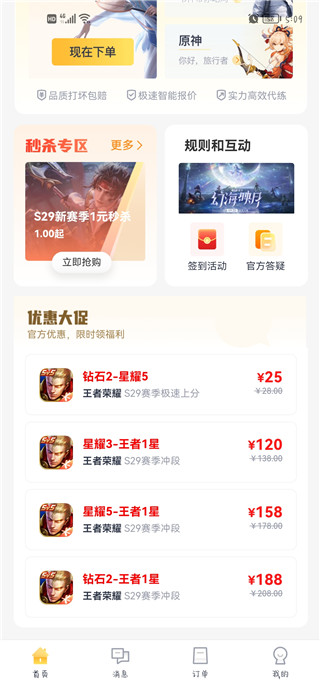 推广您的好友来接单双排,成功推广并完成订单奖励10元。
