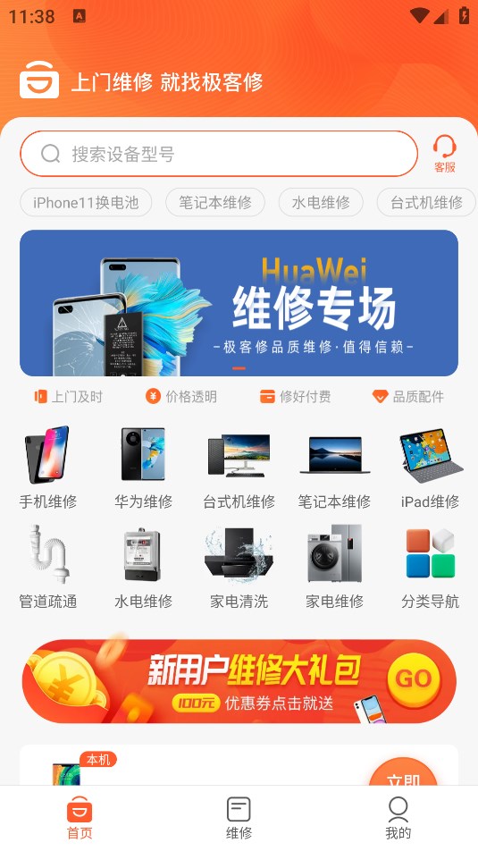 极客修,一般又称极客修手机电脑维修app。这是一款上门维修服务软件,提供手机、电脑、家电等多类维修服务,有着3分钟响应、60分钟上门、30分钟快修的高效维修体验。
