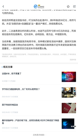 4、点进其中任意一条资讯即可开始阅读,翻阅到页面底部,还会为我们展示其他的相关文章推荐,方便用户阅读。