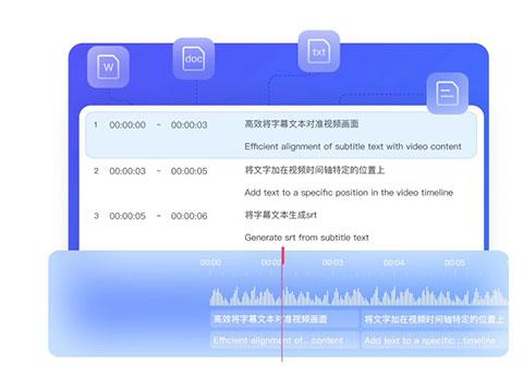 将字幕文稿与视频自动音文对齐,支持中文 /英语 /日语字幕文稿自动匹配到音频并生成时间轴,实现自动打轴!