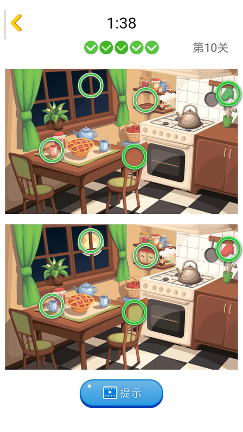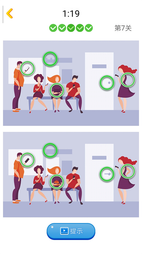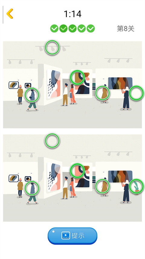 2、在后面的关卡会越来越增加难度,而且有小提示可以使用,帮你快速找出不同之处。