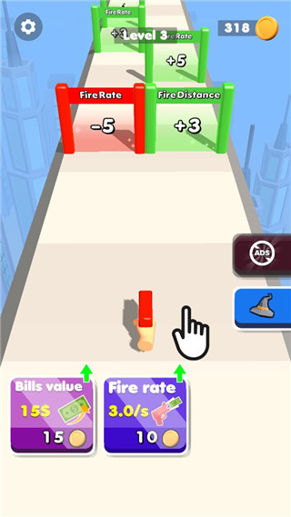最富枪王最新版是一款休闲跑酷手游,英文名叫Moneygun Run。游戏在美术上采用3D卡通风格,画面清新唯美,玩法十分丰富,高度创新的游戏模式,给玩家前所未有的体验。在游戏中我们会拥有一把钞票枪,它会不断发射出不同数量的钞票,玩家需要操控钞票枪,在道路中进行奔跑闯关,途中物品之多,用你的钞票将他们通通买下,成为真正的最富枪王。游戏中每个关卡都有不同的障碍物,完成射击就可以获取到足够的金币和奖励,需要玩家眼疾手快,对不同的任务目标发起进攻,反之,则会游戏失败。最富枪王游戏内还融合了其他元素,使得经典的玩法也变得不太一样,玩起来乐趣十足,并且在游戏中玩家们可以用每一关得来的金币对我们的钞票将进行升级,这样可以让它变得更加强大,与此同时我们还可以解锁不同的背景皮肤,让人眼前一亮。喜欢的玩家还在等什么,不妨下载最富枪王游戏体验一下试试看吧!