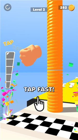5、当成功到达终点之后就可以点击tap fast将金币推出去,就可以获得金币的倍数。