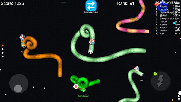 游戏里有丰富的社交互动,可以和其他玩家聊天、观战甚至加入比赛房间,提升技术。画面是2D卡通风格,虽然看起来有点恶心,但 snake 的动作细节做得很好,有一种真实感。