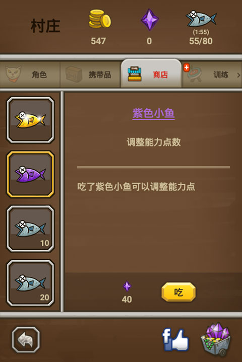 5、如果对能力点加点不满意,就可以在商店中购买紫色小鱼来重新调整能力点,也就是俗称的洗点。