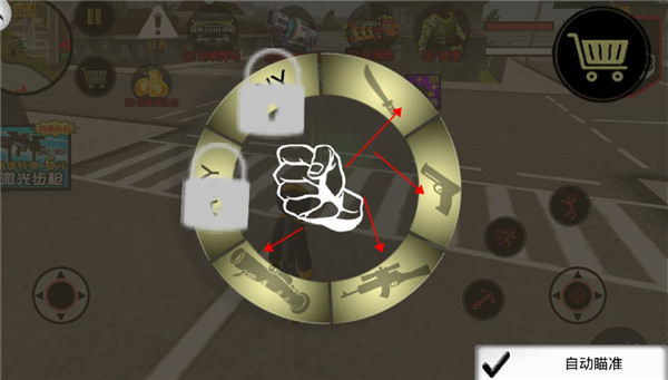 5、点击右上角的装备就可以切出轮盘来切换装备,你获得的武器都可以装备在其中