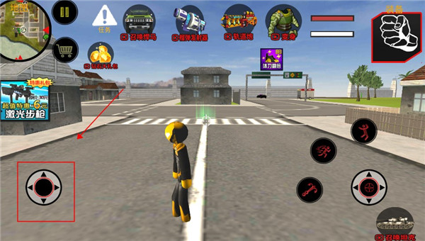 2、左边的轮盘是用来控制角色的移动的