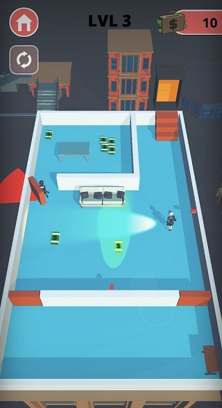 不可能的抢劫2捉迷藏的冒险中玩家需要在游戏中扮演一个非常聪明的抢劫犯,依靠自己的只会避开所有的监控设备和警察,这样就能够让自己顺利的完成抢劫的工作,游戏的难度是非常高的,所以玩家想要顺利的通关,就一定要小心,避免自己被抓住直到获得游戏的胜利,玩起来紧张又刺激。