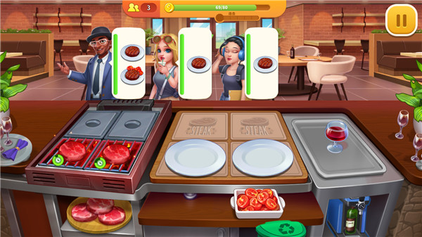 另外,游戏采用卡通风格,让整体游戏多了一丝趣味性。其次,玩家在游戏中每日登录还能领取稀有道具助力你的服务。并且,游戏主玩模式还是以闯关为主,在不同的关卡下经营任务不同,但无一例外的是时间管理,尽量在顾客耐心衰减的过程中,加紧美食烹饪手速的制作,点击上菜,用菜品佳肴满足顾客的味蕾。除此之外,游戏内还有丰富的菜单大全,所有菜系应有尽有,玩家都可以学习到。同时,游戏独特的升级系统,玩家可以利用金币来升级工具,加快烹饪的速度赚取更多的钱,喜欢这款游戏的玩家欢迎来3322软件站下载游玩!