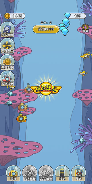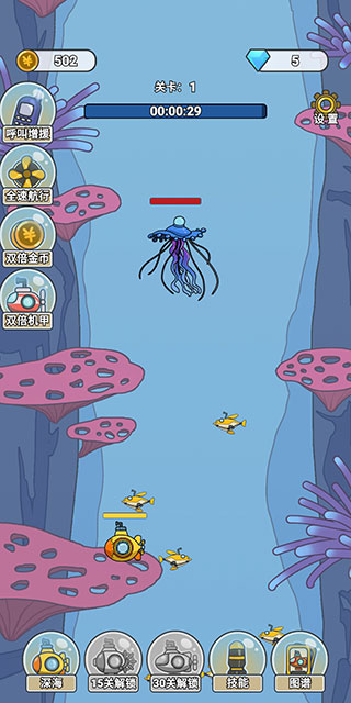 1、深海大冒险游戏搜集和花销钱币开启一艘新的潜水艇。2、多样化的副本设计方案,给你的手机游戏增加趣味性和挑战。