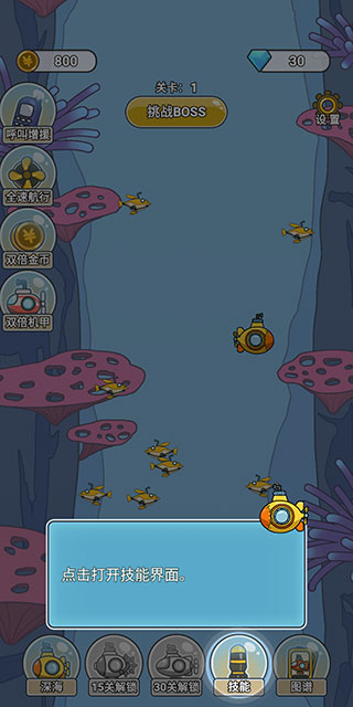 2、单只潜艇战斗力有限,我们来学习一个分身技能吧。