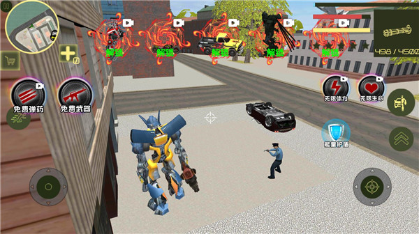 城市机甲超人官方最新版是一款机器人城市冒险游戏。在游戏中玩家可以变身机器人自由的探索这座城市,游戏中你可以选择自由或任务模式,打开地图就可以看到所有任务地点,完成任务可以获得大量奖励。除了常见的汽车机器人以外,游戏内还有飞机、坦克等十几种机器人,炫酷的外观,神奇的变形,就等你解锁。另一方面,游戏内还设有多个战斗场景,包括城市街道、废墟遗迹和外星空间等,每个场景都有精美的画面和独特的地形设置,以及多样化的敌人类型,包括外星怪物、机器人和恶势力组织等,每种敌人都有不同的攻击方式和行动模式。如果您对机甲游戏感兴趣,那就快来下载体验吧!