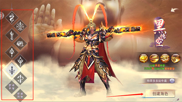 1、下载打开好神骑世界手游商城版游戏后,左边有着大量的职业供我们选择,选择好自己想玩的职业后点击“创建角色”即可进入游戏了。