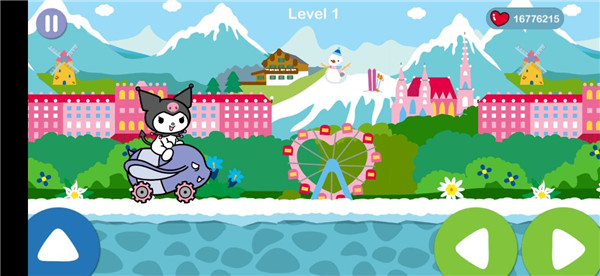 3、操控凯蒂猫,在各种环境的赛道上进行跑酷,赛道上有着许多的金币和道具;