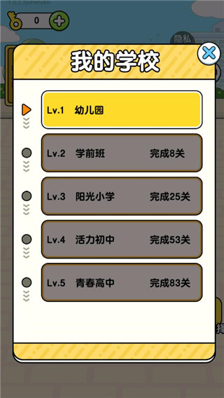 3、完成关卡可以解锁学校等级,随着等级的提高角色可以获得更高级的称号
