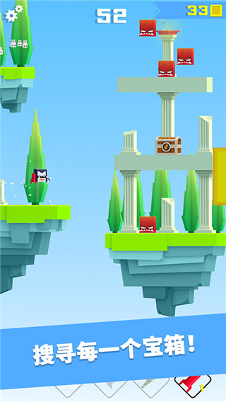 - 英雄:点击跳动前进,远距离需多次点击;掉下悬崖后重新开始,在途中收集宝箱可获得金币开启。