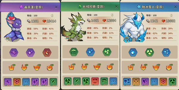 关于天赋,楼主所有的辅助天赋都是速度+15%其他随意,先手很重要,以后上色宠上debuff的会换刷成速度精准必带。主c天赋必带精准和两个主技能,速度(猫鹫天生高速除外)。