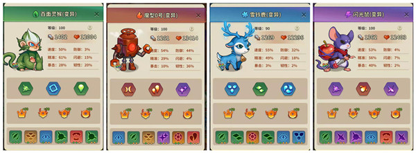 打法:这个队伍是我比较喜欢的一个,全图输出,从不看对面站位,就是爽。雪玲鹿是魔0的替代品,使用鹿生存会好点,但是整体输出降低一个档次,看个人喜好。魔型0号2技能减防御和韧性,老鼠1技能输出,百面灵猴1技能输出。还有第二回合的话,魔型0号和百面灵猴一样操作,闪电鼠3技能输出