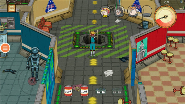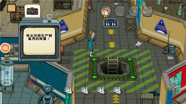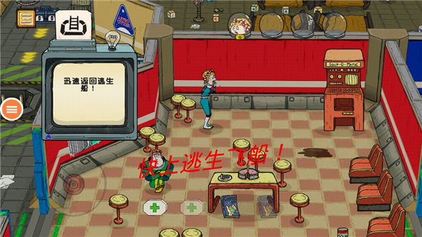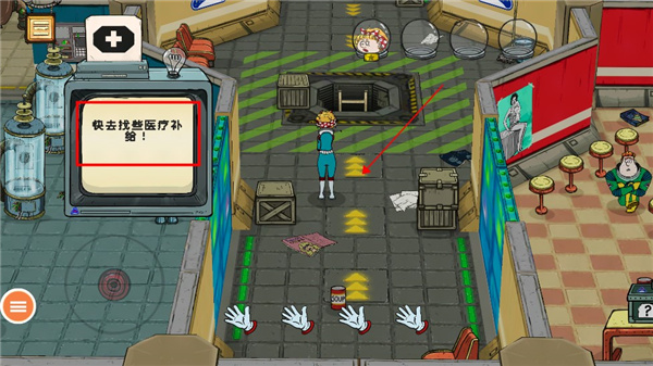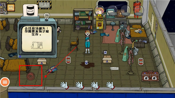 6、操纵左下角的摇杆移动,找到汤罐头丢进逃生船;