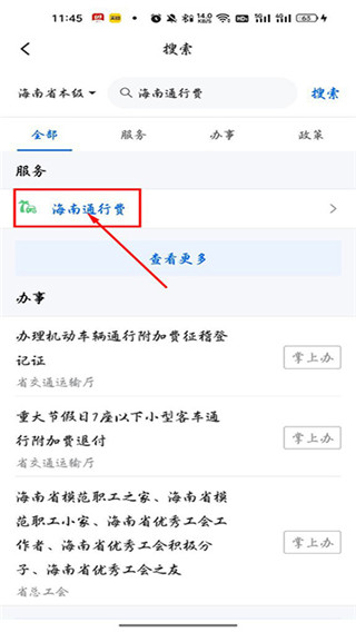 1、在APP中直接搜索“海南通行费”