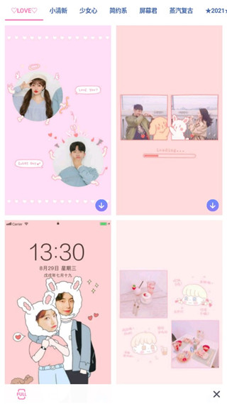 5、少女心、小清新、屏幕君多个分类海报拼图模板,同时添加视频&图片多个素材,完美满足手机壁纸/短视频等各种用途
