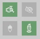 这个图左上是使用纺车轮标志,右上是使用水滴轮标志,左下是使用浮子,右下是使用路亚假饵。一般来说轮子大伙只有看着杆子拉力大小来搭配合适的轮就行,进阶后才需要根据目标对象鱼的习性来挑选各收线速度的轮。