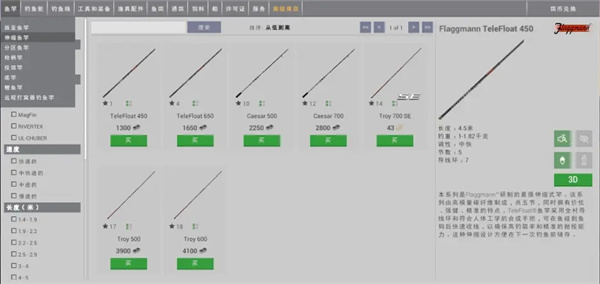 说完路亚杆再来给大家说说浮钓杆,浮钓杆分为俩种,一种叫伸缩鱼竿,这里给大家推荐7m的伸缩杆,由于杆子较长,提鱼范围远,作钓时能够在7m内瞬间将鱼提起,所以也称之为秒提杆。由于游戏内这种秒提的机制,也使得玩家在拥有船的情况下,忽略杆自身最大钓重的影响,能够秒提游戏内所有鱼,无论大小。
