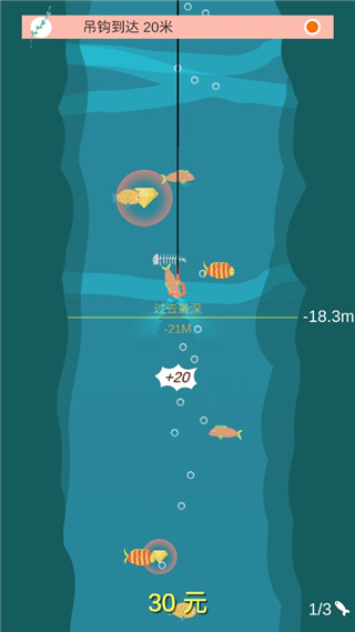 3、到达一定深度后会收杆,遇到鱼会自动上杆;