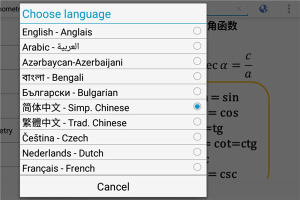 这个软件界面很简单,操作起来也很顺手,点开左上角就能切换公式类型,一点都不会让人觉得麻烦。最让我喜欢的是它支持多种语言,而且完全免费,没有任何广告或者内购,这对于学生党来说真的太友好了。