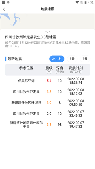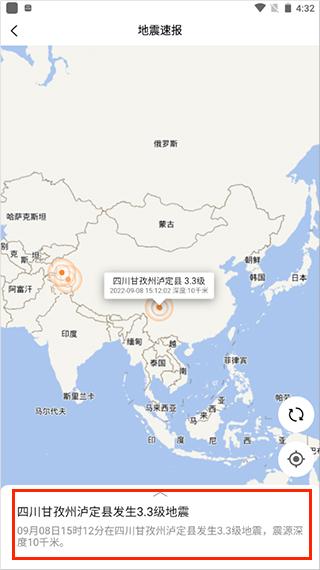 3、点击地震信息查询地震的地理位置、地震震级、发震时刻等信息。
