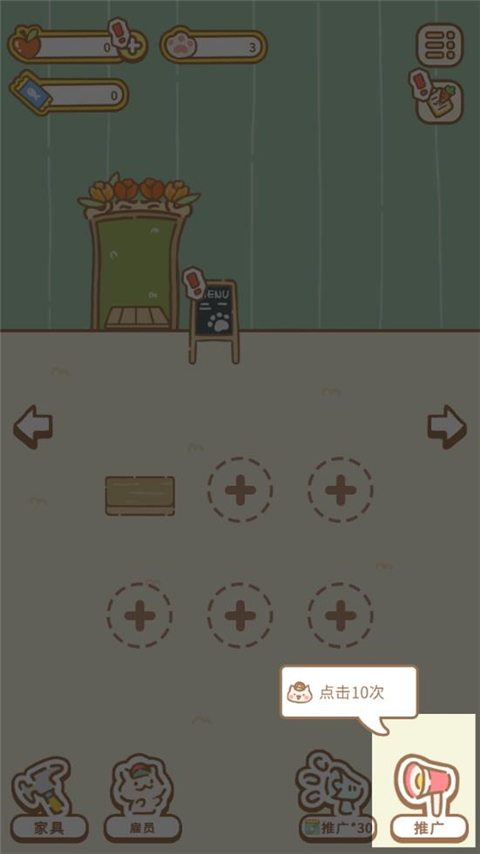 3、招募不同类型的猫咪,吸引多多的顾客前来光临,赚取更多的财富,成为首屈一指的经营者。