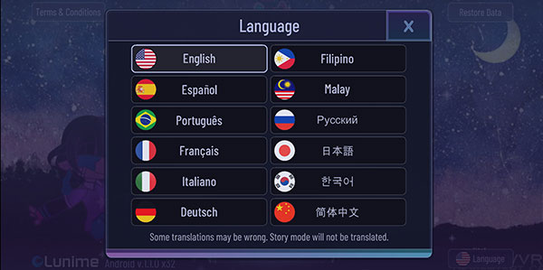1、打开加查love游戏后,点击右下角【Language】切换语言。