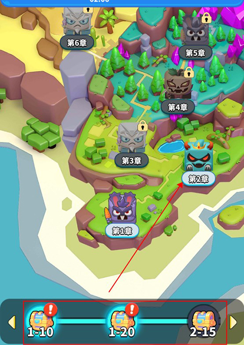 1、游戏以章节闯关玩法为主,玩家通过完成章节关卡可以获得丰富宝箱奖励。