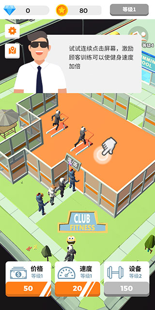 3、试试连续点击屏幕,这样可以激励顾客更快训练,使顾客的健身速度加倍。