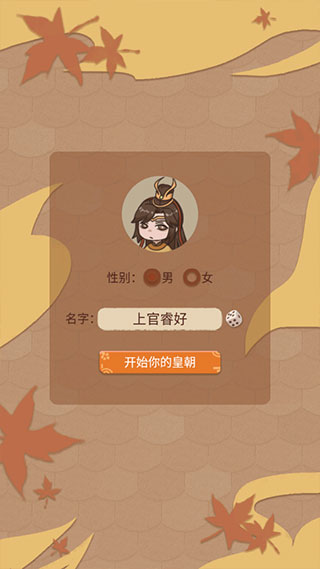2、选择自己的昵称以及性别,然后开启你的皇朝。