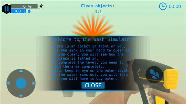 3、里面为玩家提供了关卡任务,玩家需要清理眼前的物体,点击关闭;