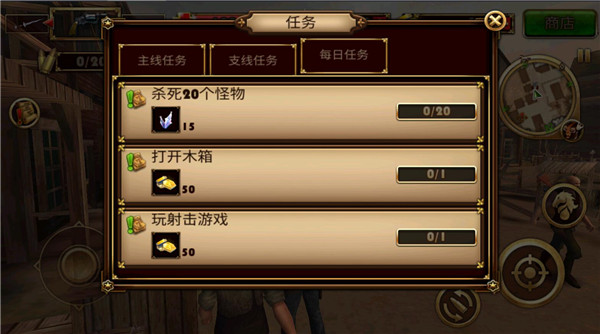 牛仔生活模拟器游戏是一款模拟冒险类的游戏。在游戏里玩家游走在西部小镇上可以接取各种任务,完成任务有丰厚的奖励,可以用来购买各种装备。游戏里提供了各种稀有装备供玩家选择包括多个品种骏马、先进武器等。除此之外游戏里提供了多个挑战模块包括飞镖、纸牌、1对1对决等等,每个关卡各个关卡紧张又刺激,模拟战争可以给玩家带来爽快的打击感,同时更好的体验西部世界。牛仔生活模拟器游戏采用细腻精致的游戏画面风格,广阔恢弘的地图场景,还原一个热血刺激的西部世界,在这里运用你强大的勇气和胆识去迎接新的挑战吧,喜欢动作射击类游戏的玩家不要错过哦! 游戏特色 1、挑战众多的敌人,获取更多的奖励 2、购买强大的武器,体验武器上的绝对压制 3、横版对战玩法,考验你的身法与实力 4、玩家将在法外之地的西部与敌人进行枪械的决斗 牛仔生活模拟器攻略 1、打开游戏,点击开始游戏 2、滑动方向键控制人物移动,滑动右边空白区域调整视野 3、填装子弹对准敌人射击 4、商店可以购买枪支弹药着装等物品 5、接取任务可以获得金币奖励,可以用来购买装备,提升战斗力 更新日志 v3.0.0版本 修复了bug