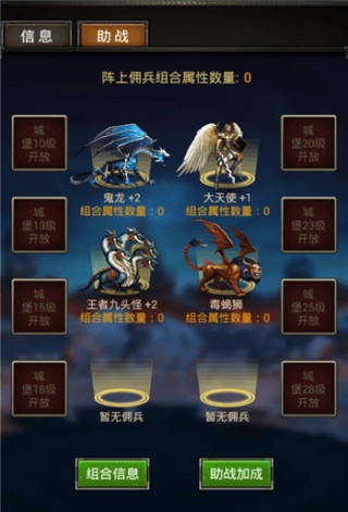 1)当城堡达到10级会开启助战系统。助战佣兵,可激活出战佣兵的缘分,从而达到提高战斗力的效果。