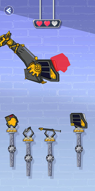 5、如果选择了错误的零件,就会损失一颗心,红心为零时游戏就失败了。