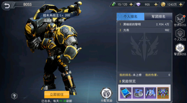 除去世界BOSS以及个人BOSS还有一个军团BOSS,顾名思义是由军团攻打的BOSS,出战即代表自己的军团,击败完BOSS会获得奖励这个奖励全靠玩家自己手速,并没有优先拾取的说法,随后会根据个人造成的伤害排名额外发放奖励,并且击败BOSS的军团额外获得大量奖励,军团长可以根据实际情况将其分配给贡献大的团员哦。