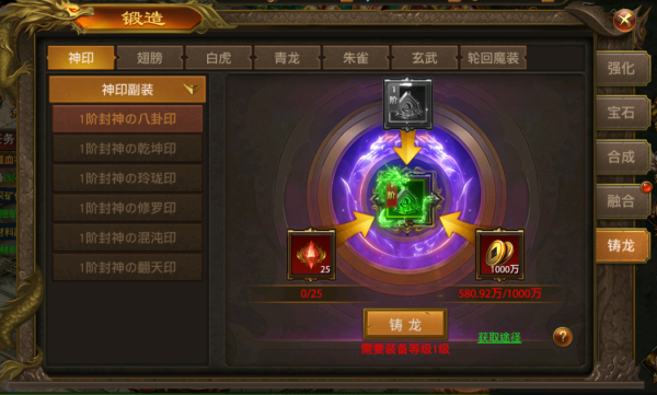 3、强化有几率成功或失败,每次强化需消耗一定的强化石或者用钻石替代。